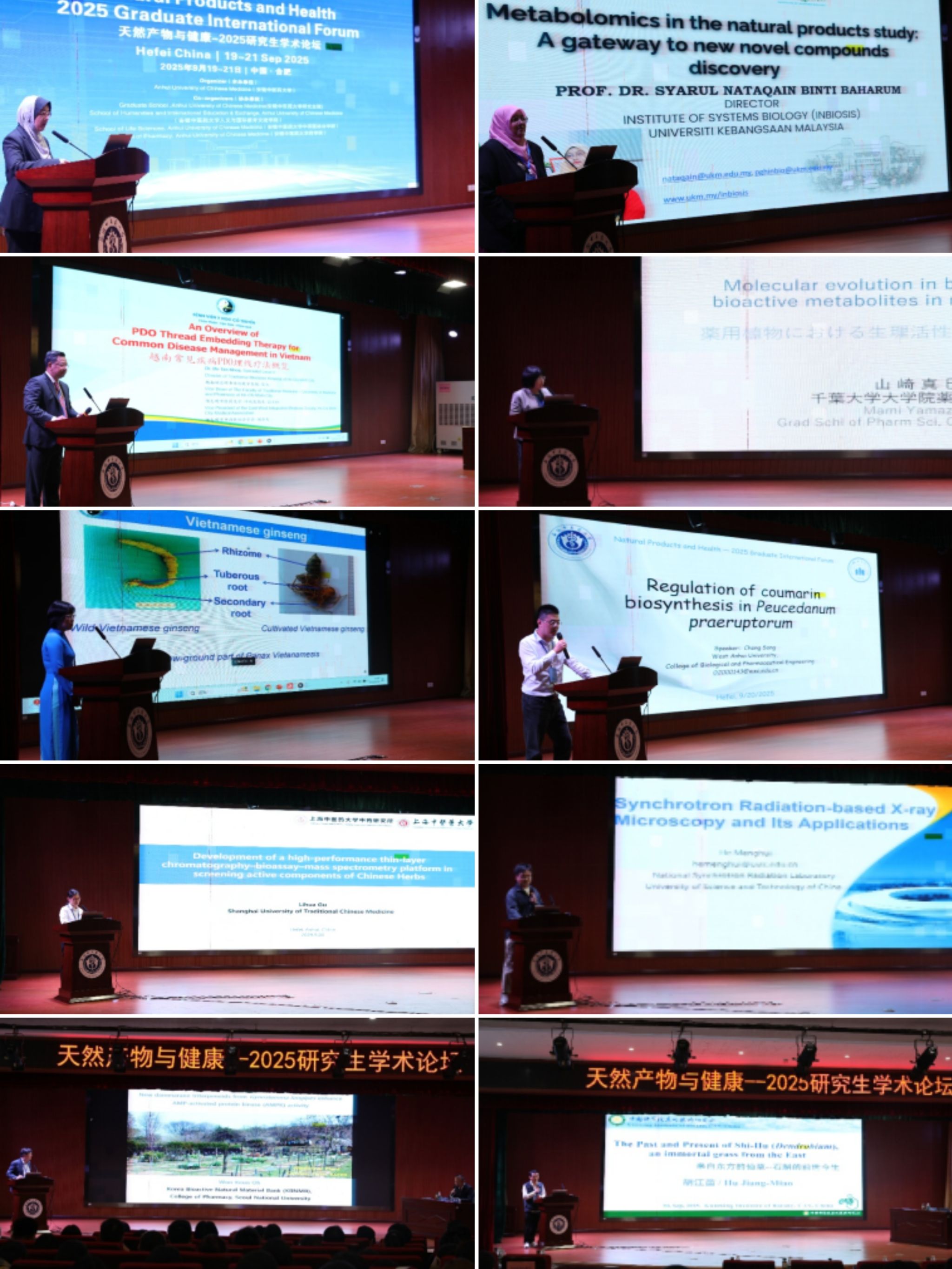 本次论坛吸引了来自马来西亚国立大学、韩国首尔国立大学、日本千叶大学、胡志明市传统医学医院、中国科学院昆明植物研究所、中国科学技术大学、兰州大学、上海中医药大学、天津中医药大学、皖西学院等多所国内外高校与医院参与。论坛聚焦“天然产物与健康”主题,邀请20位国内外专家及研究生,围绕药用植物生物活性代谢物生物合成的分子进化、生物合成调控、利用新技术新方法发现新化合物,以及天然产物对代谢综合征、阿尔茨海默病等疾病的潜在应用前景等内容,做了高质量的学术报告。