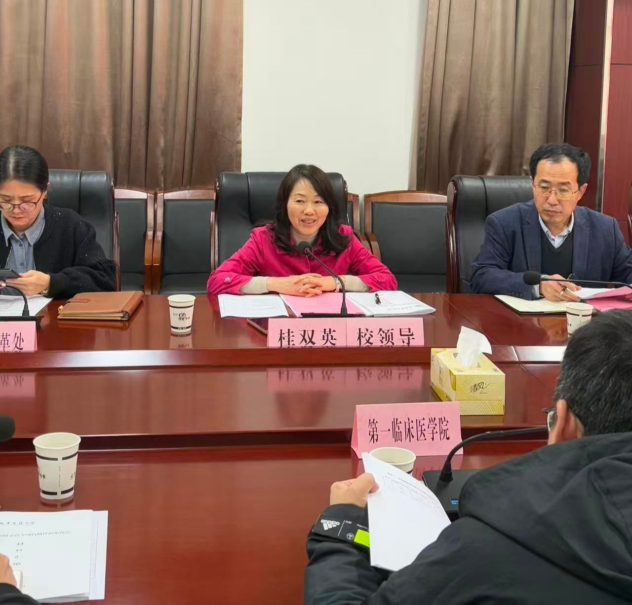 11月3日下午,学校召开2025年学位点专项合格评估工作布置会。校党委常委、副校长桂双英主持会议,研究生院、人事处、发展改革处(学科办)、学生处、科技处、财务处等职能部门主要负责人,马克思主义学院、第一临床医学院、第二临床医学院、神经病学研究所、上海中医药大学附属曙光医院安徽医院等单位负责人,以及本次参评学位点秘书参加会议。