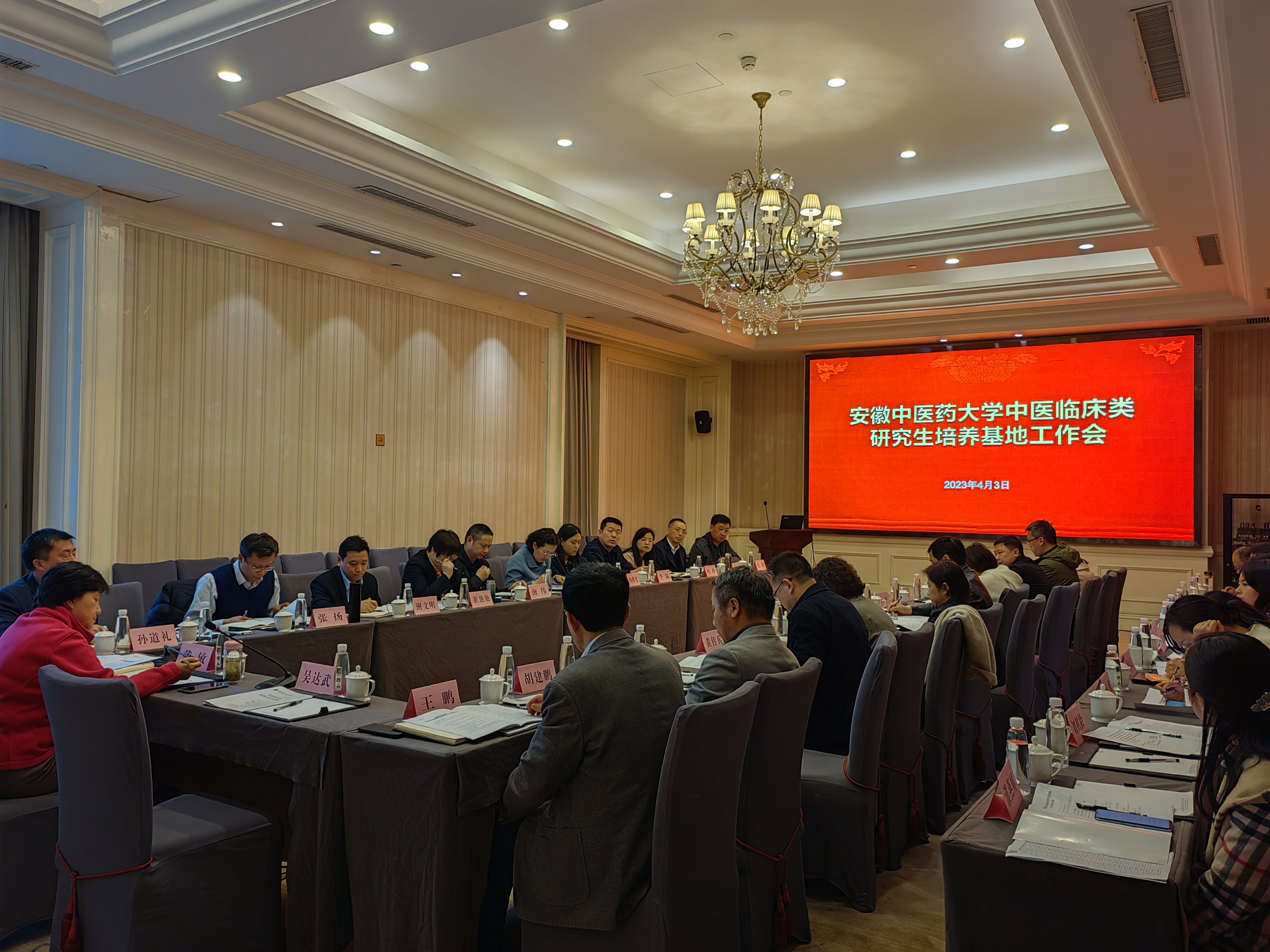 4月3日下午,学校组织召开了中医临床类研究生培养基地工作会议。学校副校长戴敏,医院事务管理处处长孙道礼,学生处副处长张扬,第一临床医学院、第二临床医学院、安医大一附院高新院区、芜湖市中医医院、六安市中医院、铜陵市中医医院、滁州中西医结合医院、太和县中医院等省内各中医临床类研究生培养基地的分管领导和科室负责人,研究生院领导和相关科室人员以及全体中医临床类研究生辅导员参加了会议。会议由研究生院院长王鹏主持。