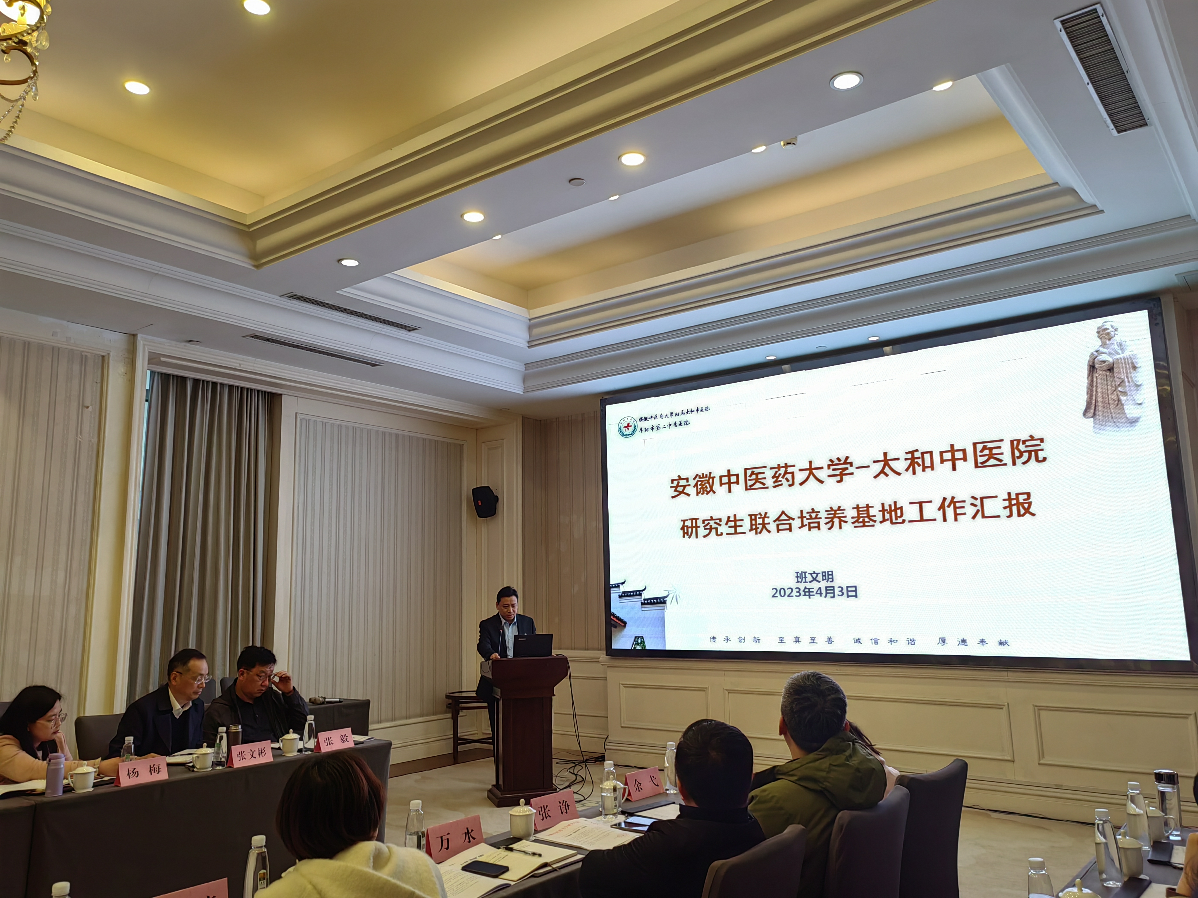 第一临床医学院作为中医临床学位点依托单位,介绍了研究生培养相关情况。六安市中医院和太和县中医院分别代表中医临床类研究生培养基地做了工作经验交流。