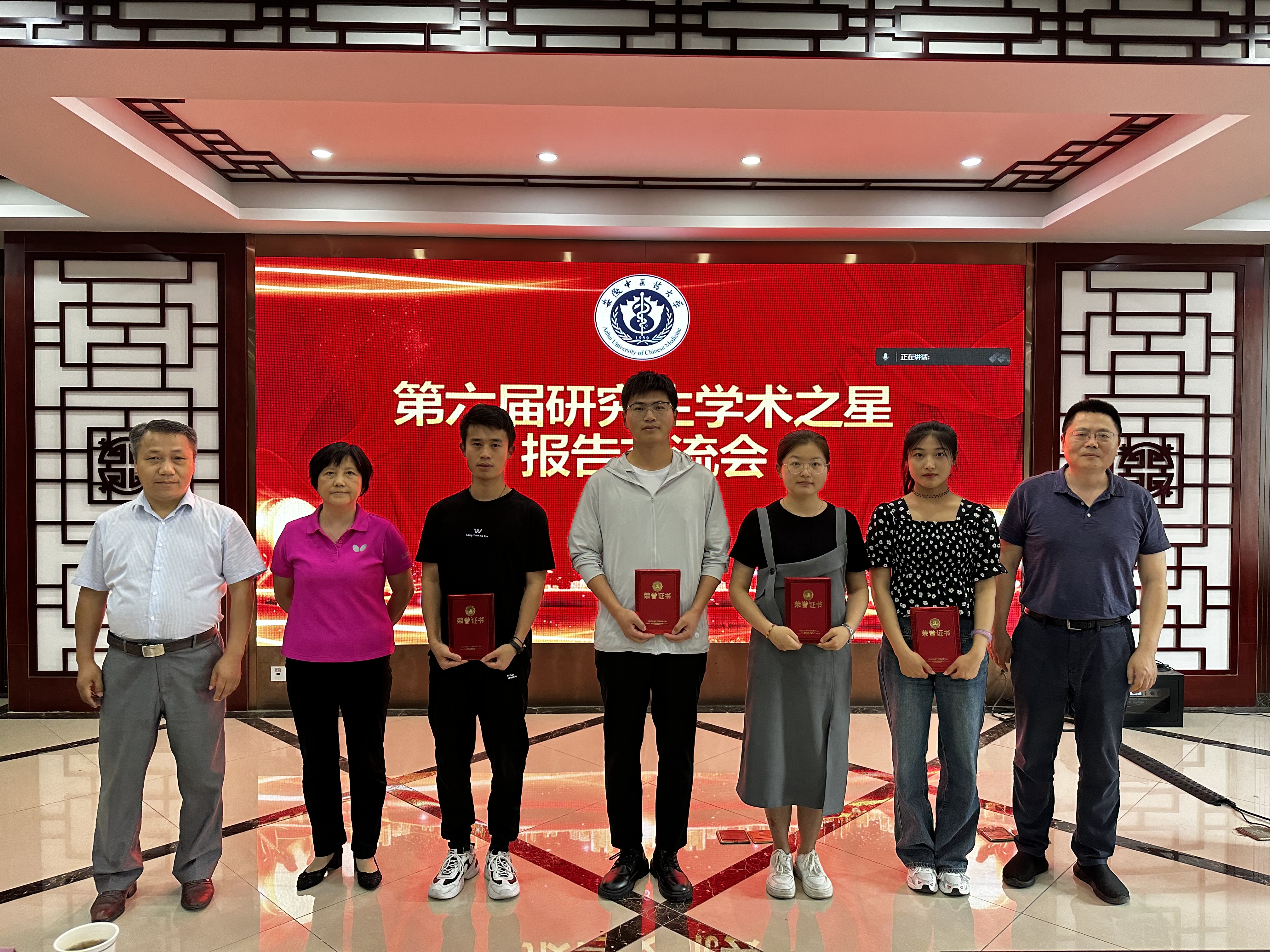 报告会上,胡建鹏副院长宣读了《关于表彰第六届研究生“学术之星”与2023年度科技创新奖学金获奖学生的决定》,鼓励同学们向“学术之星”们学习。戴敏副校长为“学术之星”们颁发了荣誉证书。