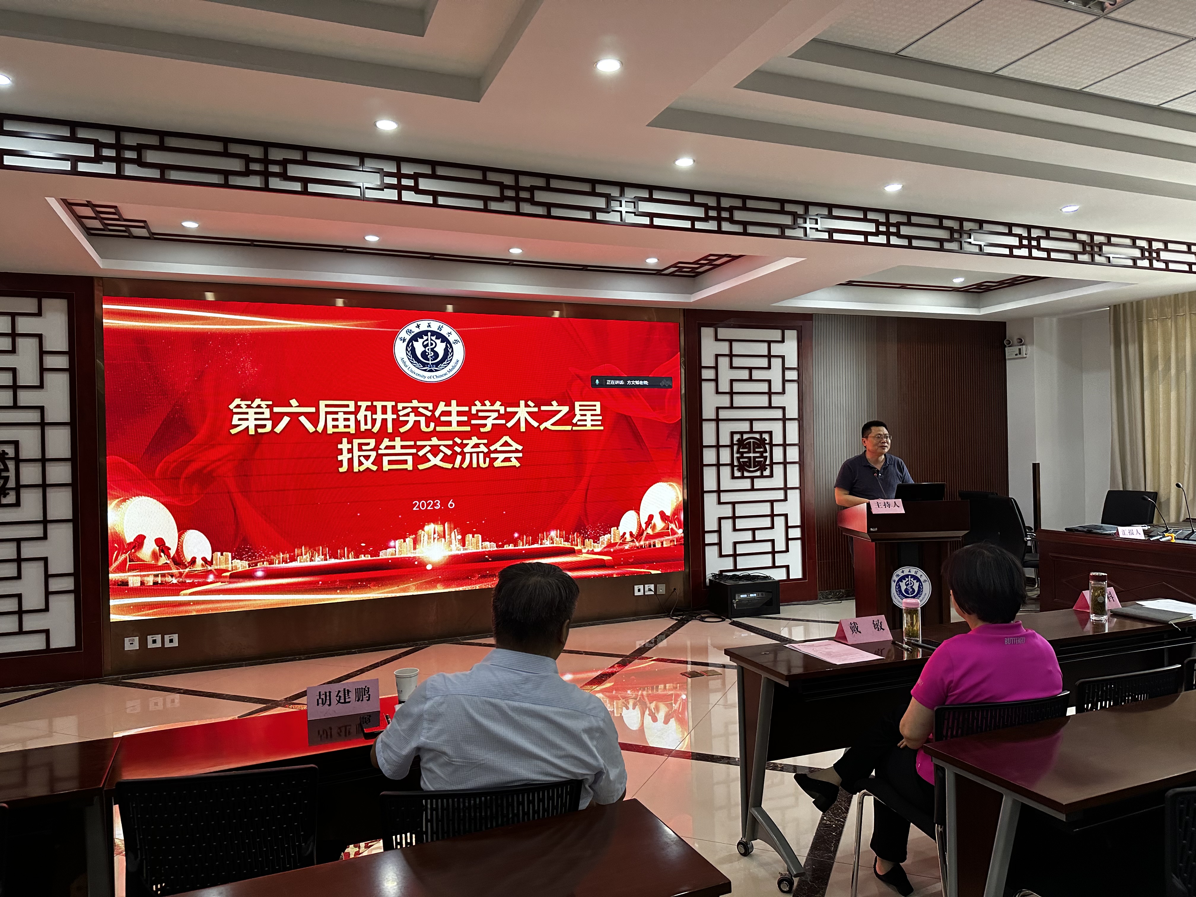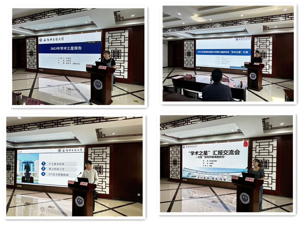 第六届研究生“学术之星”报告交流会于6月14日下午2时在少荃湖校区沁馨堂举办。副校长戴敏教授、研究生院副院长胡建鹏教授,药学院副院长尹登科教授出席本次报告交流会。报告会由药学院副院长尹登科教授主持。出席本次报告会的还有部分研究生导师以及研究生代表。