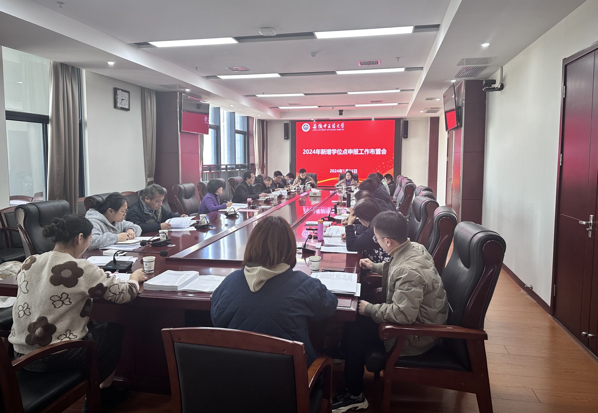 1月15日下午,2024年新增学位点申报工作布置会议在图书馆楼第一会议室召开。学校副校长戴敏、研究生院和各拟申报点牵头学院负责人、工作秘书等参加会议,会议由戴敏主持。